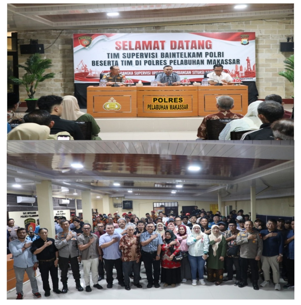 MAKASSAR, DUTAKARSA.COM – Tim Supervisi BIK Mabes Polri melaksanakan kunjungan kerja ke Mako Polres Pelabuhan Makassar dalam rangka monitoring dan evaluasi perkembangan situasi keamanan dan ketertiban masyarakat (Kamtibmas), Kamis (23/4/2026).