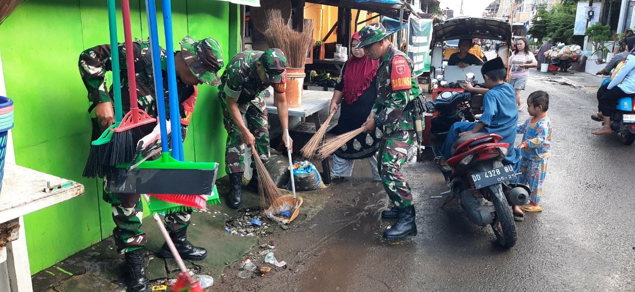 Makassar, DUTAKARSA.COM — Dalam rangka mengantisipasi bencana banjir dan wabah penyakit bagi warga setempat, Personel Koramil 1408-02/Tallo bersama Staf kelurahan Pannampu dan PJ RW/RT kelurahan Pannampu melaksanakan Karya Bakti pembersihan Pasar Pannampu di Jl. Pannampu, kelurahan Pannampu, Kec. Tallo pada hari Rabu, 20 Agustus 2025.