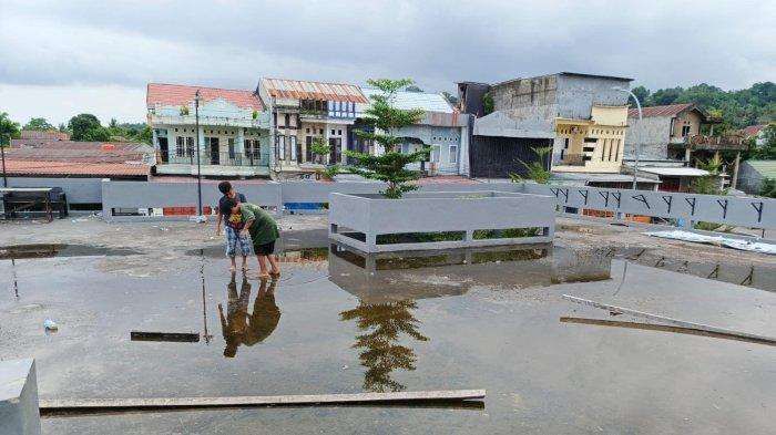 Sementara di lantai dua, terdapat genangan air hujan. Genangan air tersebut lantaran saluran pembuangan yang tersumbat oleh sampah. Ketinggian air mencapai mata kaki orang dewasa.